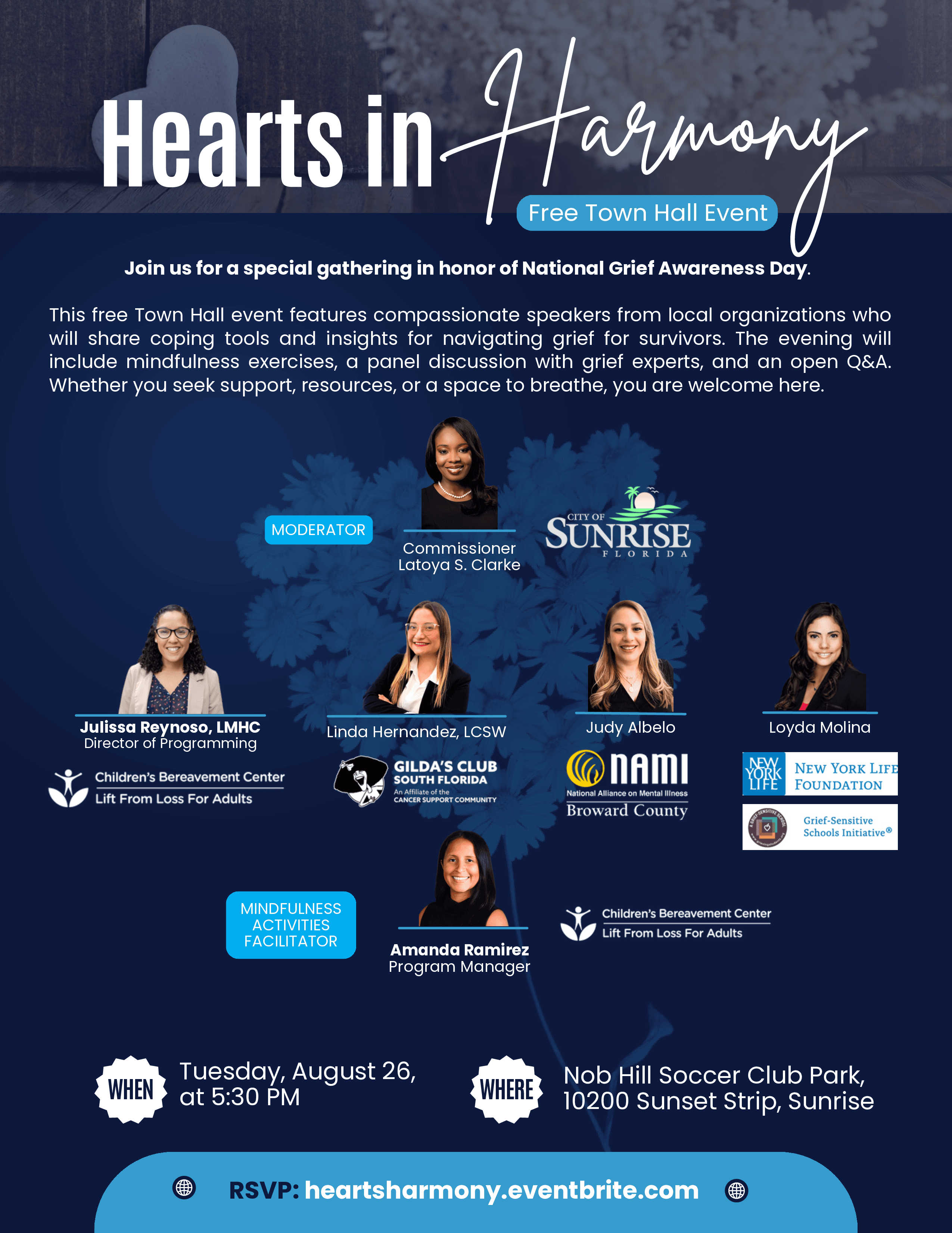 This free Town Hall event features compassionate speakers from local organizations who will share coping tools and insights for navigating grief. The evening will include mindfulness exercises, a panel discussion with grief experts, and an open Q&A. Whether you seek support, resources, or a space to breathe, you are welcome here.